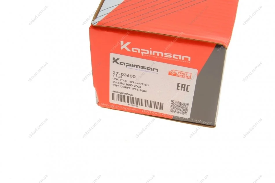 KAPIMSAN – турецька компанія, яка виробляє запчастини для легкових автомобілів, бусів та мінівенів. KAPIMSAN виробляє такі запчастини як накінечники кермової тяги, кульові опори, подушки двигуна та амортизатора, важелі підвіски, сайлентблоки, кермові тяги і тяги стабілізатора.