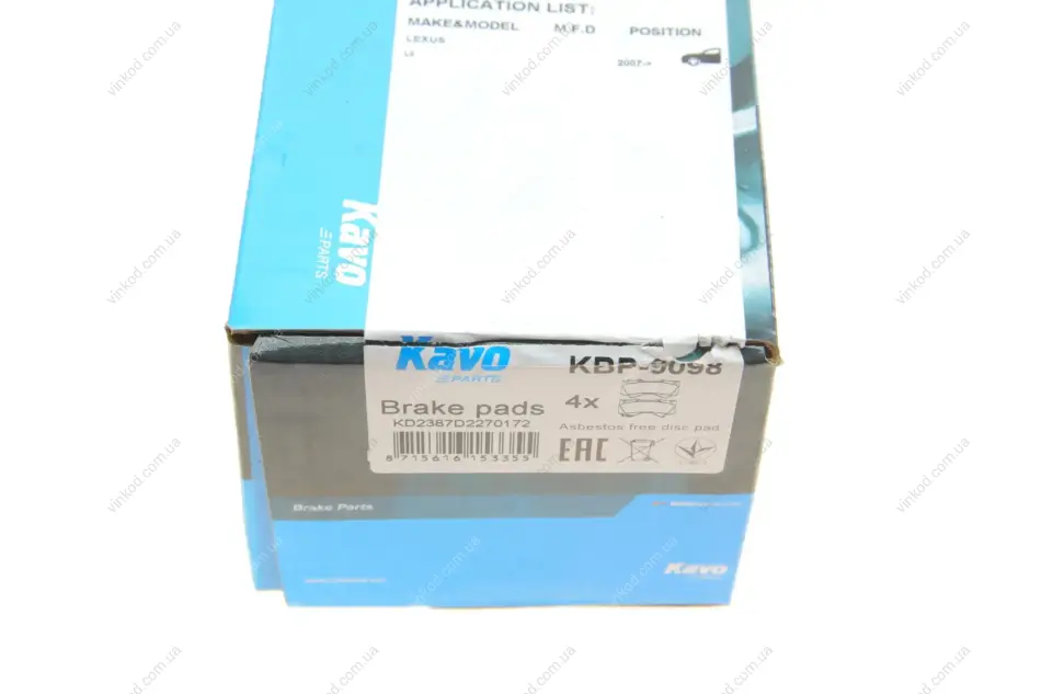 Гальмівні колодки перед. Toyota Land Cruiser 08- (advics) KAVO KBP-9098