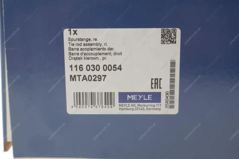 Поперечна кермова тяга MEYLE 116 030 0054