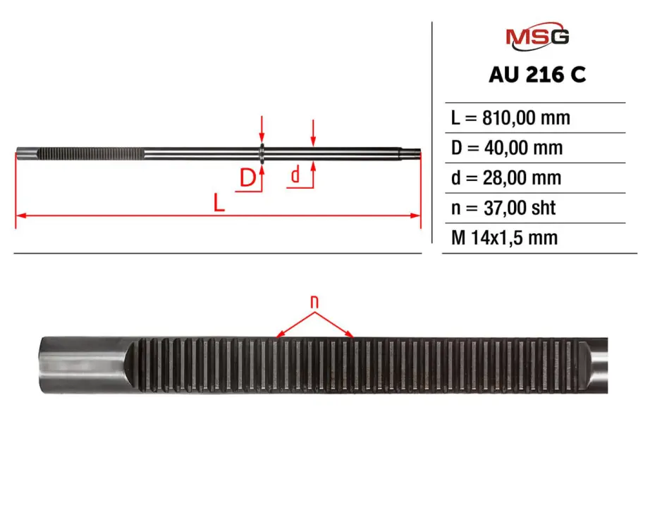 Шток рульової рейки з ГПК новий AUDI A6 ALLROAD (4BH, C5) 00-05,A6 (4F2, C6) 04-11,A6 (4B2, C5) 97-05,A6 (4B5, C5) 97-05 MSG AU216C