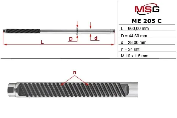 Шток рульової рейки з ГПК новий MERCEDES-BENZ E-CLASS (S210) 96-03,E-CLASS (W210) 95-02 MSG ME205C