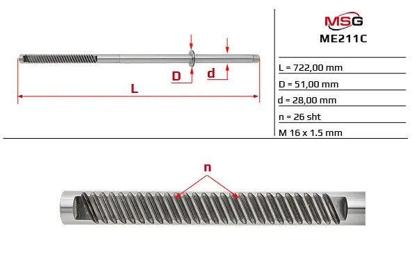 Шток рульової рейки з ГПК новий MERCEDES-BENZ M-CLASS (W163) 98-05 MSG ME211C