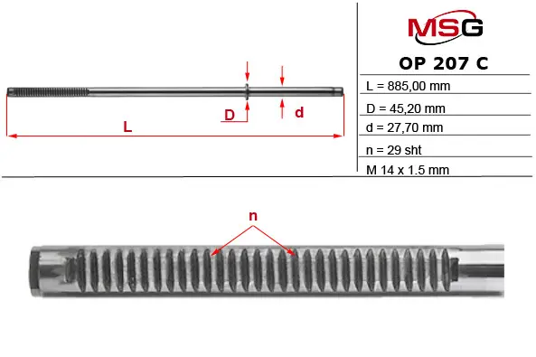 Шток рульової рейки з ГПК новий RENAULT MASTER II (JD) 98-; OPEL MOVANO A (U9, E9) 98-; NISSAN INTERSTAR (X70) 02- MSG OP207C