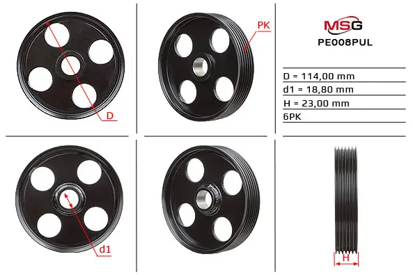 Шків насоса ГПК CITROEN ZX (N2) 91-98,SAXO (S0, S1) 96-03; PEUGEOT PARTNER I 96-02,405 II Break (4E) 92-96 MSG PE008PUL