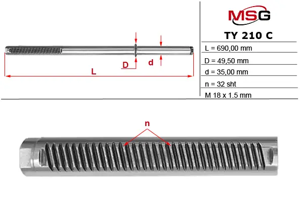 Шток рульової рейки з ГПК новий TOYOTA LAND CRUISER PRADO (J90) 00-02,4 RUNNER (N180) 95-02; VW TARO 89-97 MSG TY210C