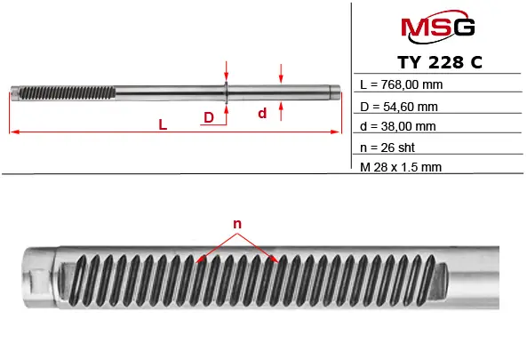 Шток рульової рейки з ГПК новий TOYOTA LAND CRUISER (J200) 07-; LEXUS LX (J200) 07- MSG TY228C