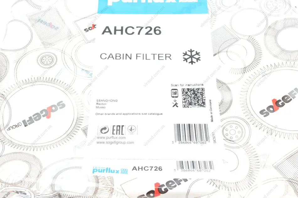 Фільтр салону Purflux AHC726