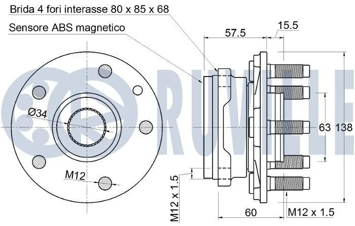 JAGUAR Маточина передня XF II (X260) 3.0 AWD 15- RUVILLE 221904