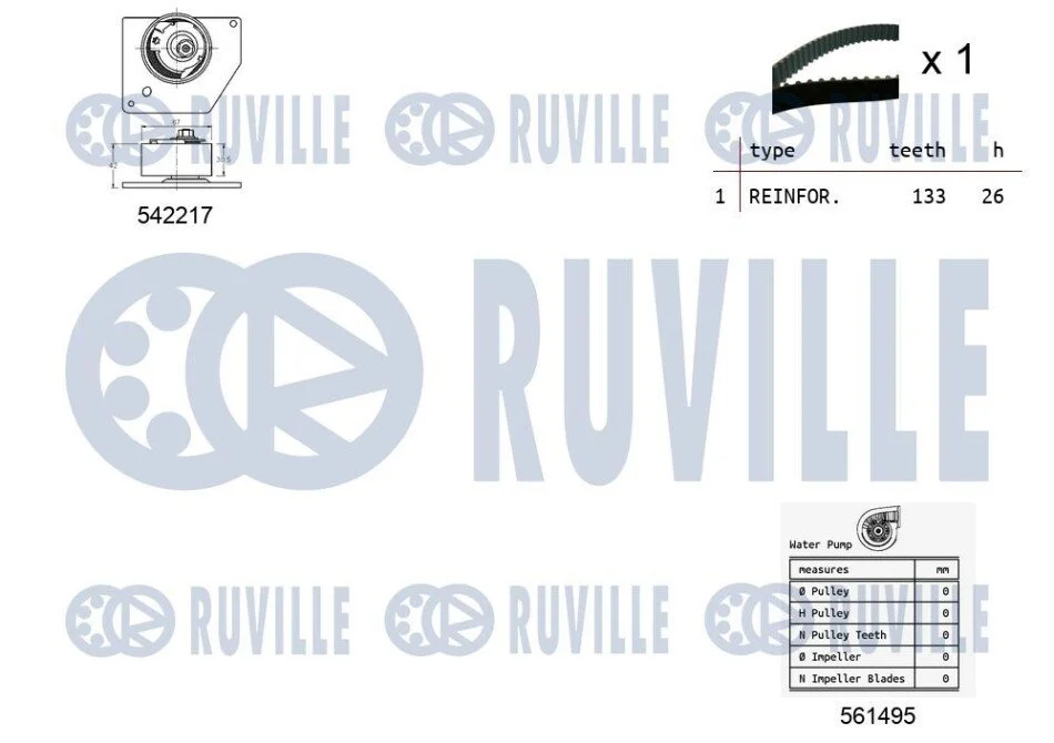 RENAULT К-кт ремня ГРМ (ремень+ролик +помпа воды) GRAND SCENIC III RUVILLE 5503361