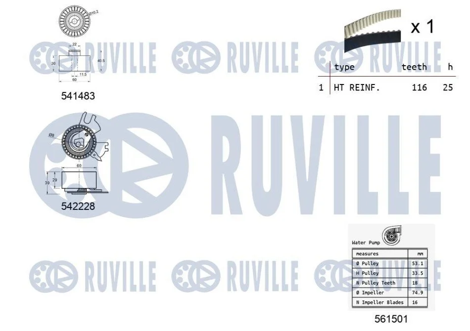 К-кт ГРМ (+помпа) Citroen Jumpy/Peugeot Expert 2.0HDi 07- RUVILLE 5503671