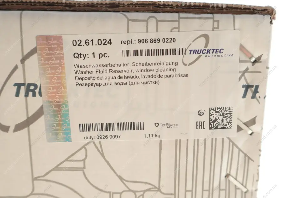 Бачок рідини омивача AUTOMOTIVE TRUCKTEC 02.61.024