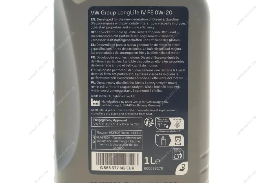 Олива моторна 0W-20 (1,0л) VAG GS65577M2