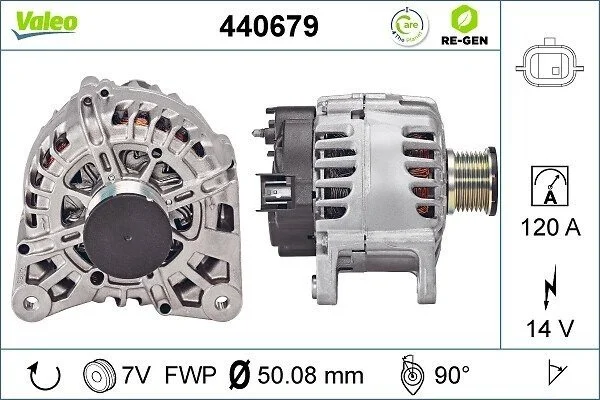 Генератор (14В, 120А, відновлений) DACIA DOKKER, DOKKER/MINIVAN, DUSTER, DUSTER/SUV, LODGY, LOGAN MCV II, SANDERO II, NISSAN QASHQAI II, RENAULT CAPTUR I, CLIO IV, CLIO IV/HATCHBACK 0.9-2.0 07.10- Valeo 440679