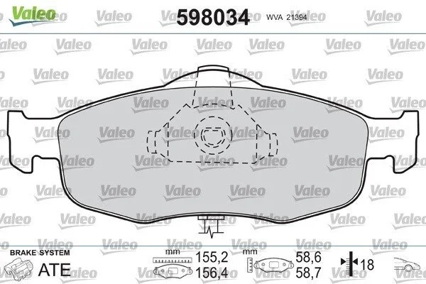 Гальмівні колодки, дискове гальмо (набір) Valeo 598034